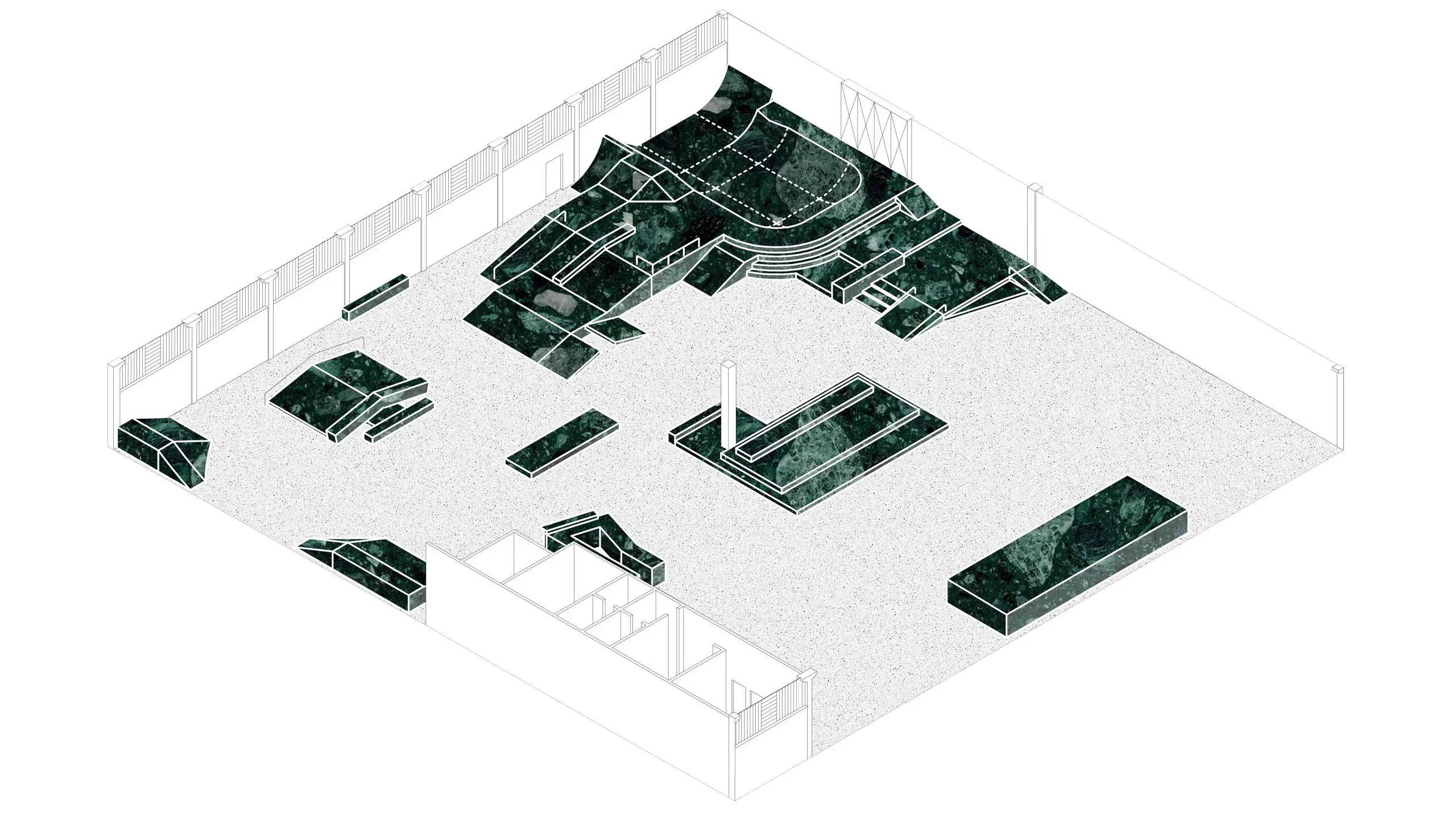 Conversion of an old industrial warehouse into a new skatepark in San Giovanni Lupatoto.