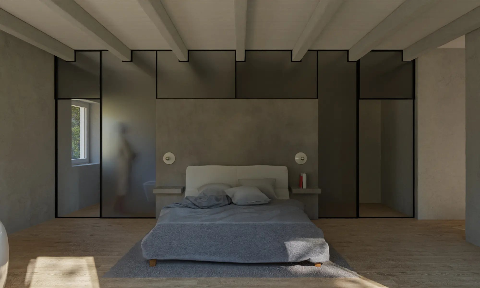 Progetto per il recupero di un vecchio casale sulle colline affacciato sui vigneti della Val Squaranto per una famiglia di Hong Kong amante della dolce vita italiana.