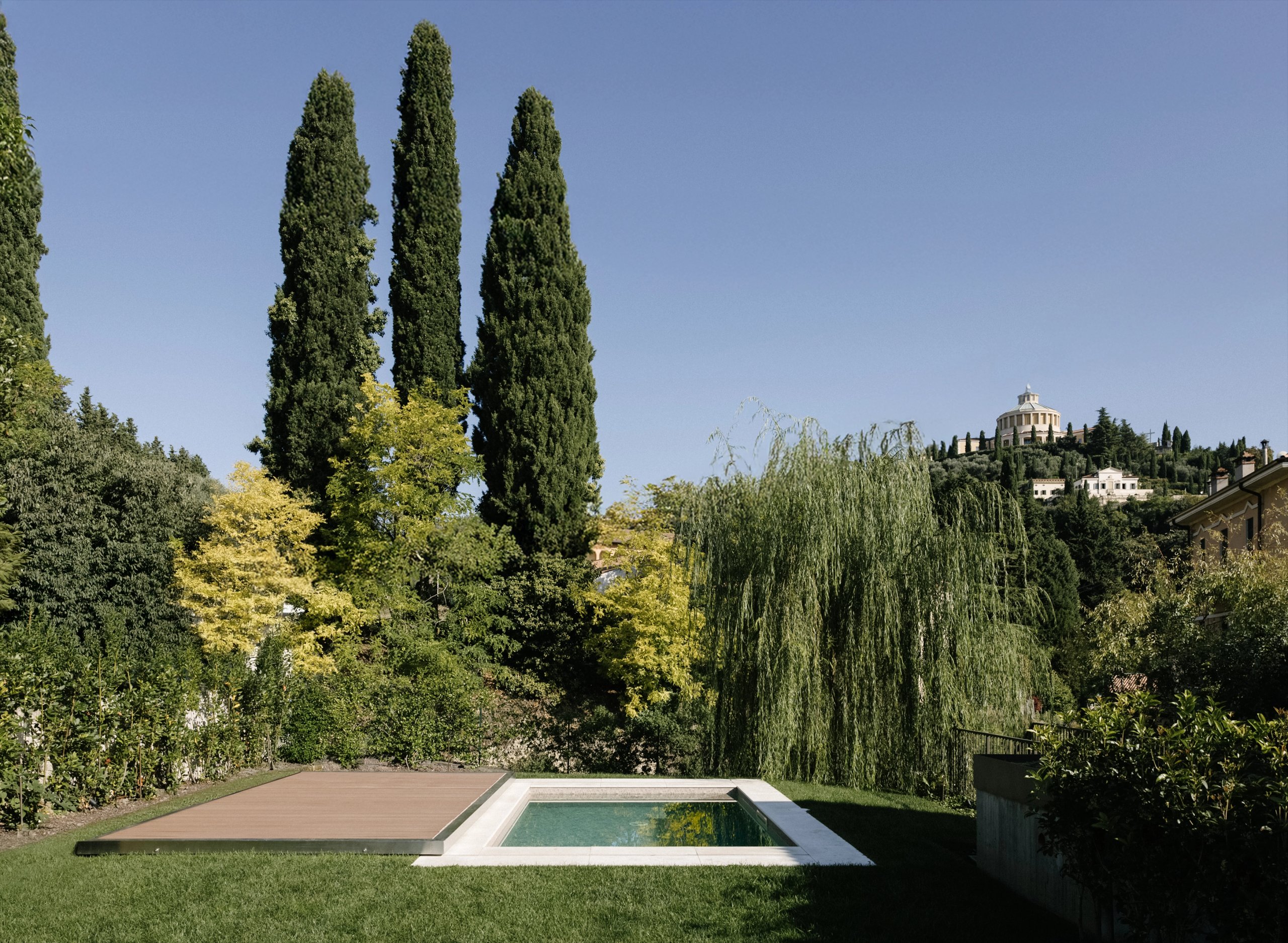 Set within the garden of a large early-20th-century Liberty villa, in the landscaped context of the first Torricelle hills, the project involves the construction of an underground garage with a swimming pool above.
