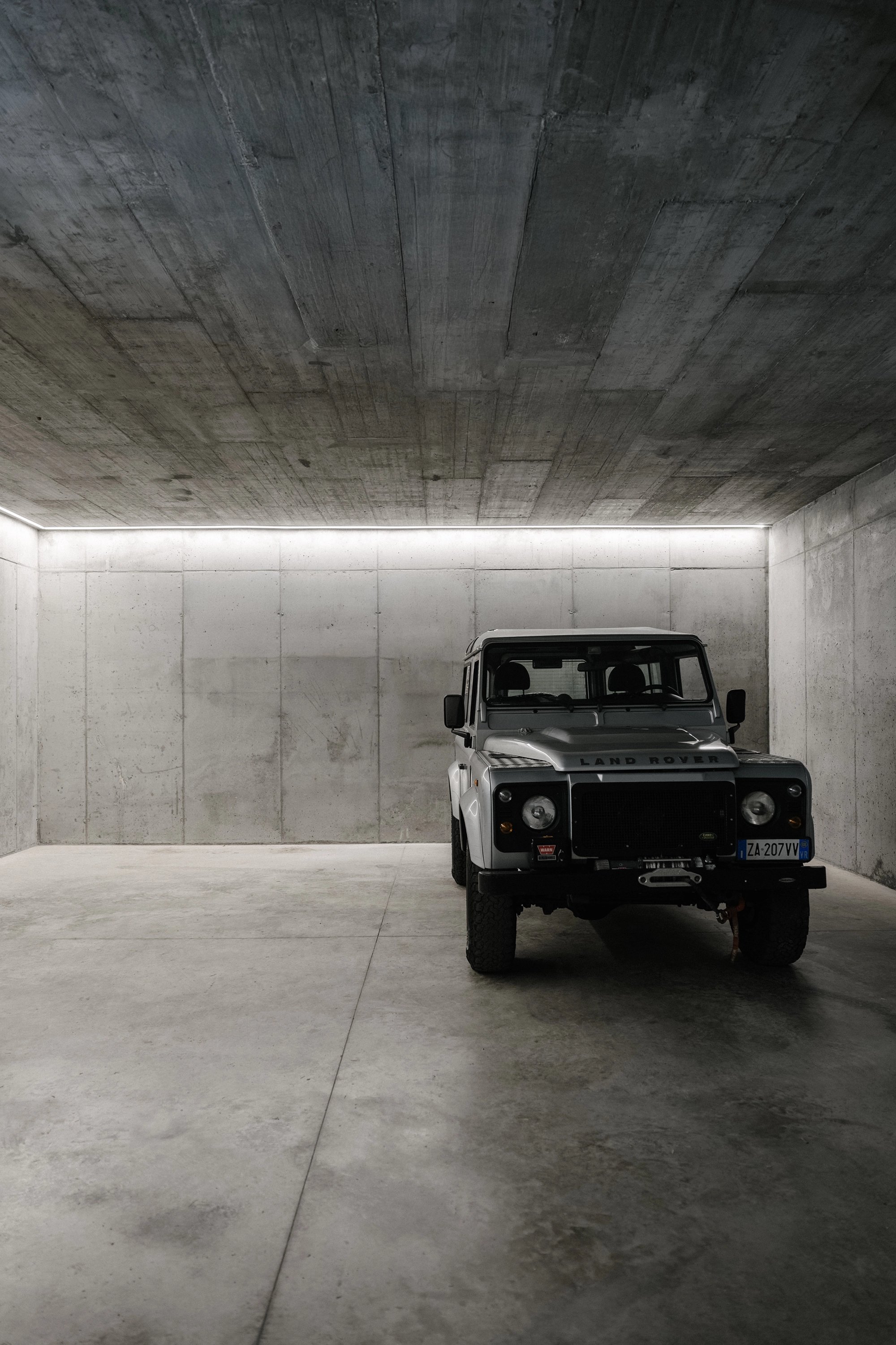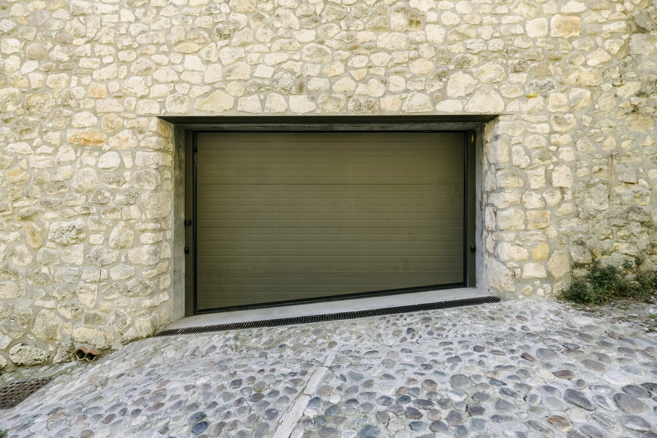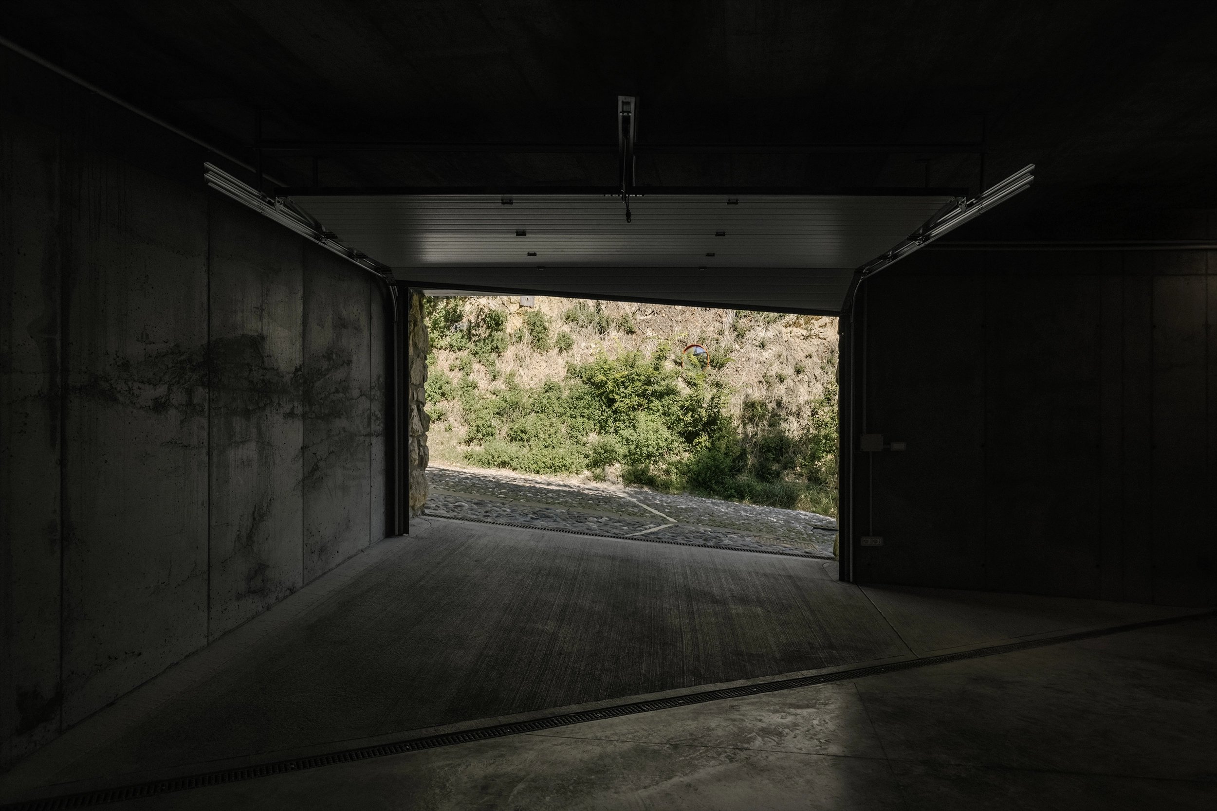 The garage frontage and entrance were designed in continuity with the villa’s existing perimeter wall, reconstructed in stone to ensure a natural integration with the surrounding context.