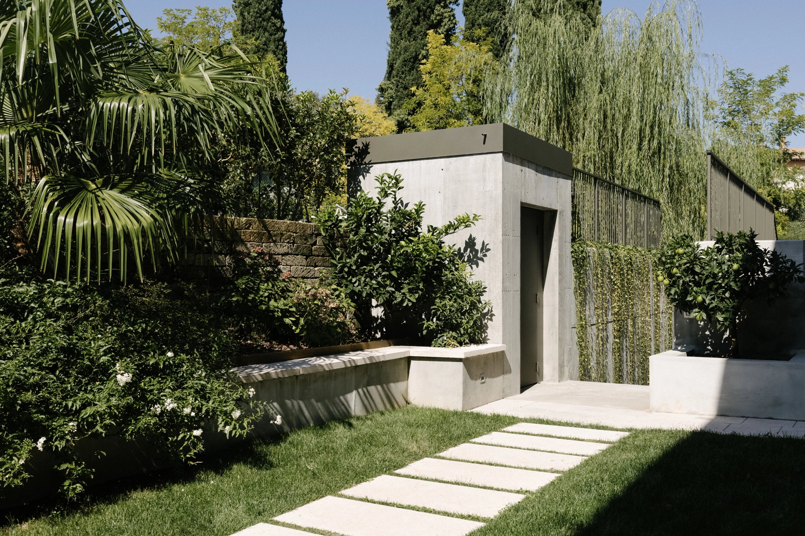 The intervention is discreetly inserted into the garden, respecting its original layout and preserving the relationship between architecture and landscape.